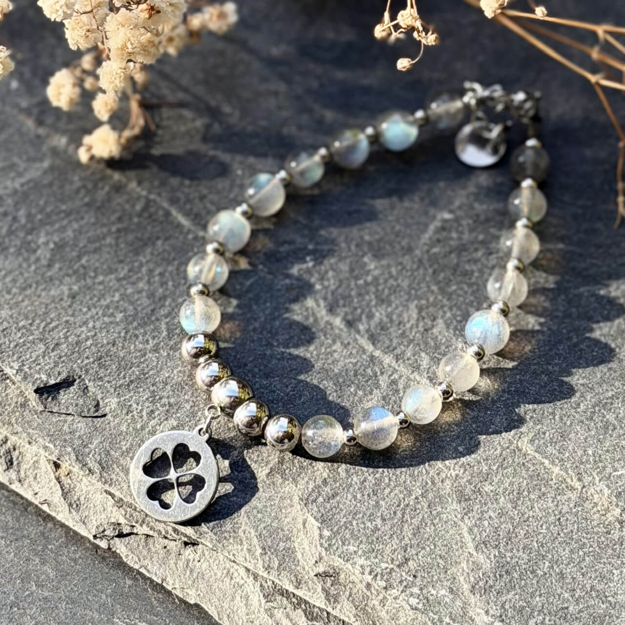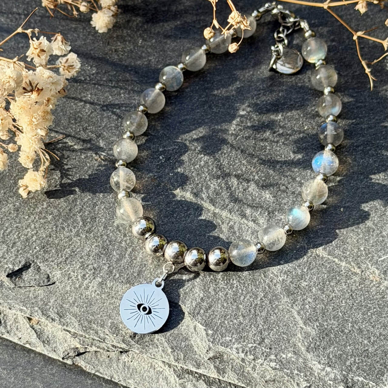 Ce bracelet en labradorite naturelle a été imaginé pour vous aider à retrouver votre équilibre intérieur, à préserver votre énergie et à vous protéger des influences extérieures.
