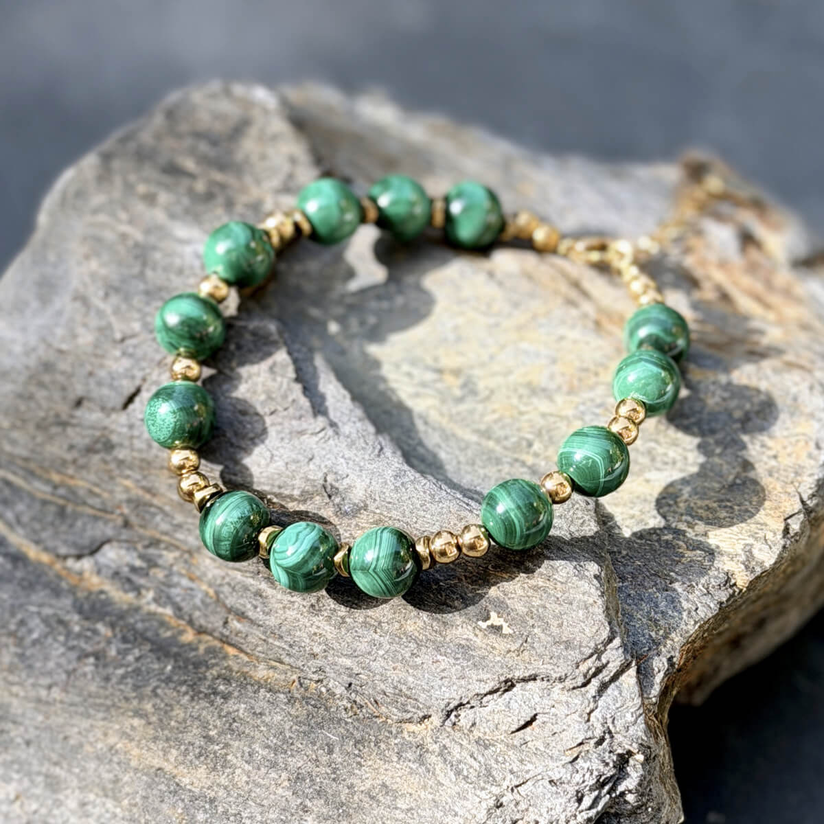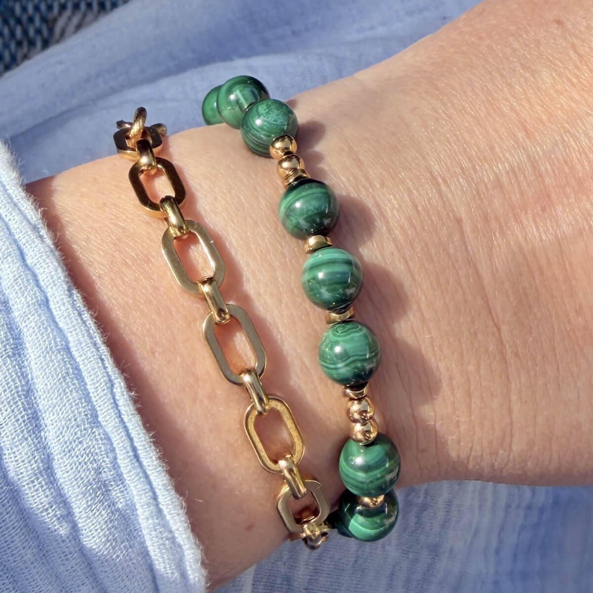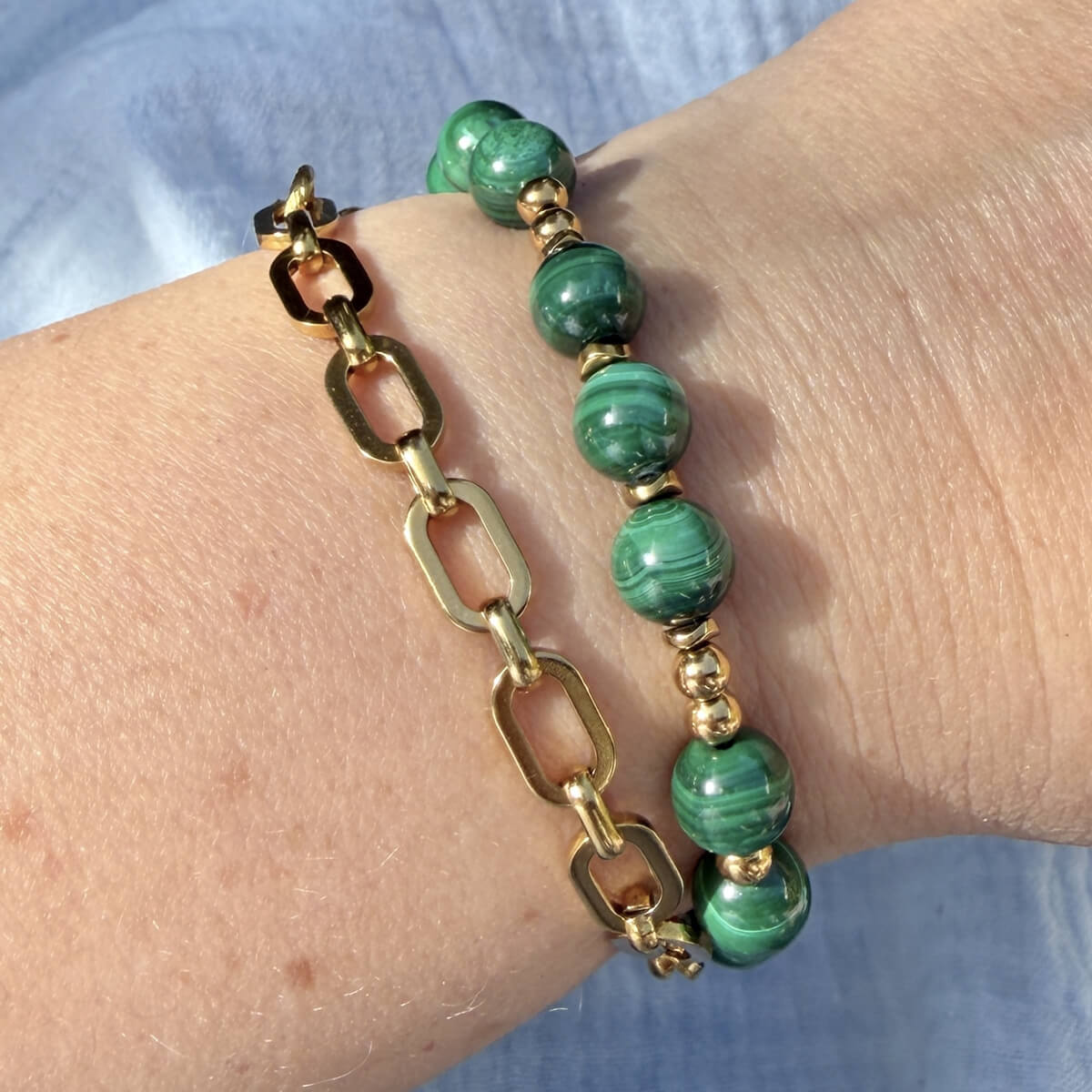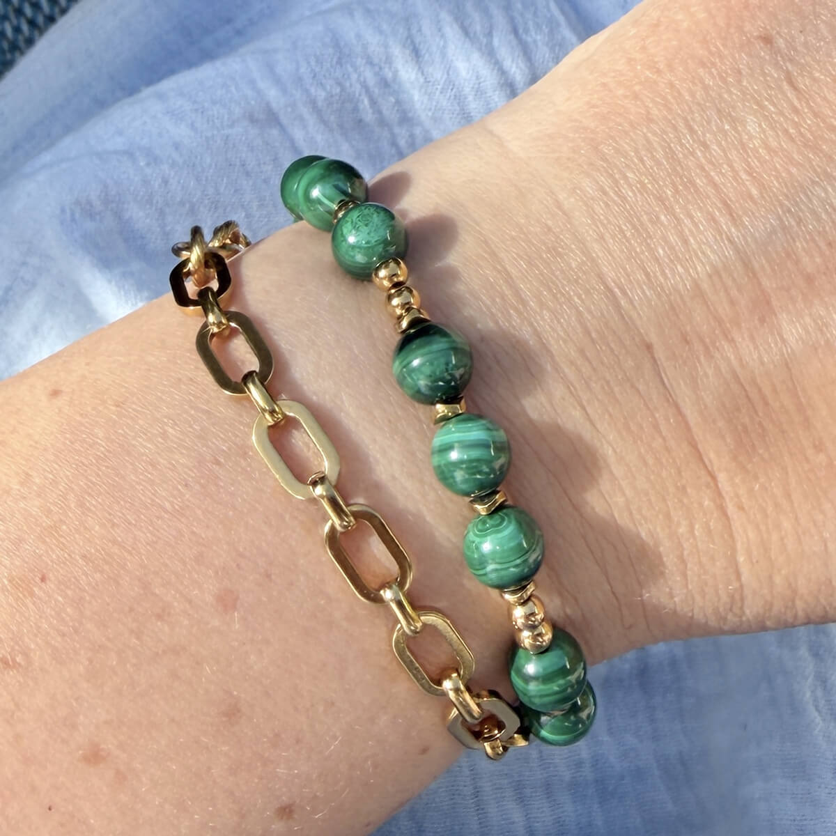 Ce bracelet en pierre de malachite naturelle vous accompagne sur plusieurs plans :