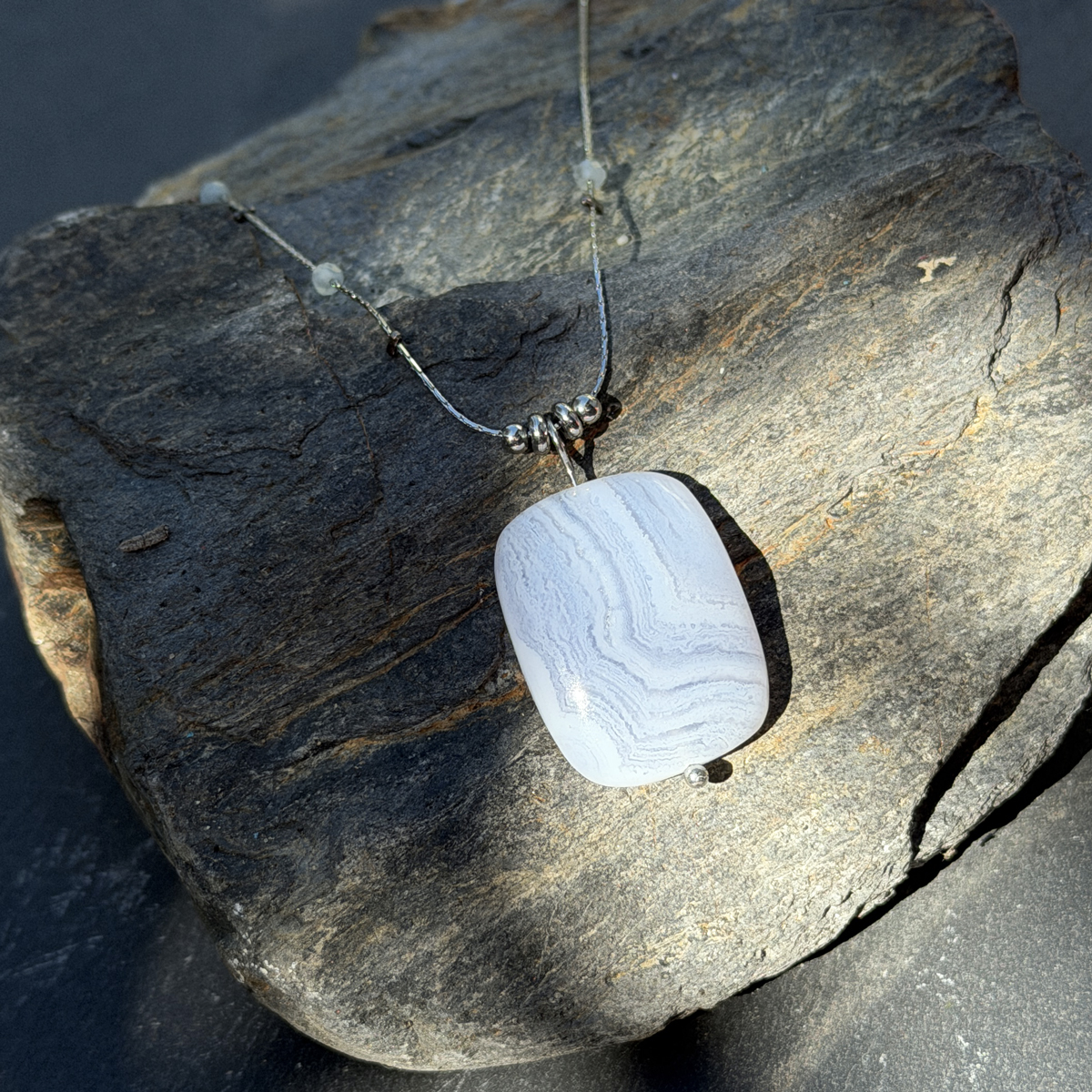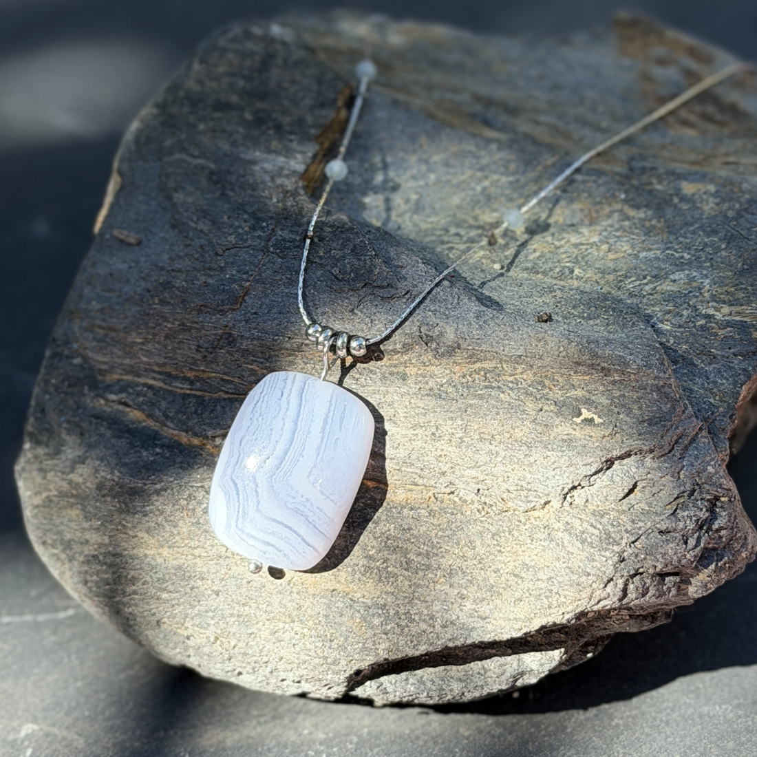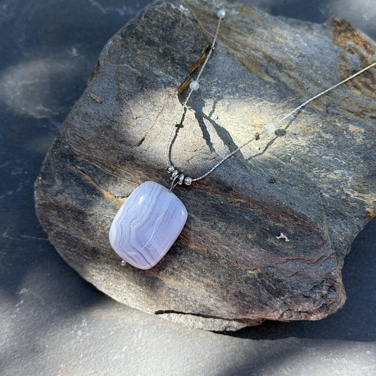 C’est précisément pour cela que ce collier en calcédoine naturelle a été créé. Pierre de douceur et de communication par excellence, la calcédoine agit sur les émotions et le mental. Elle apaise le stress, encourage la clarté d’esprit et aide à trouver les mots justes, ceux qui viennent du coeur.
