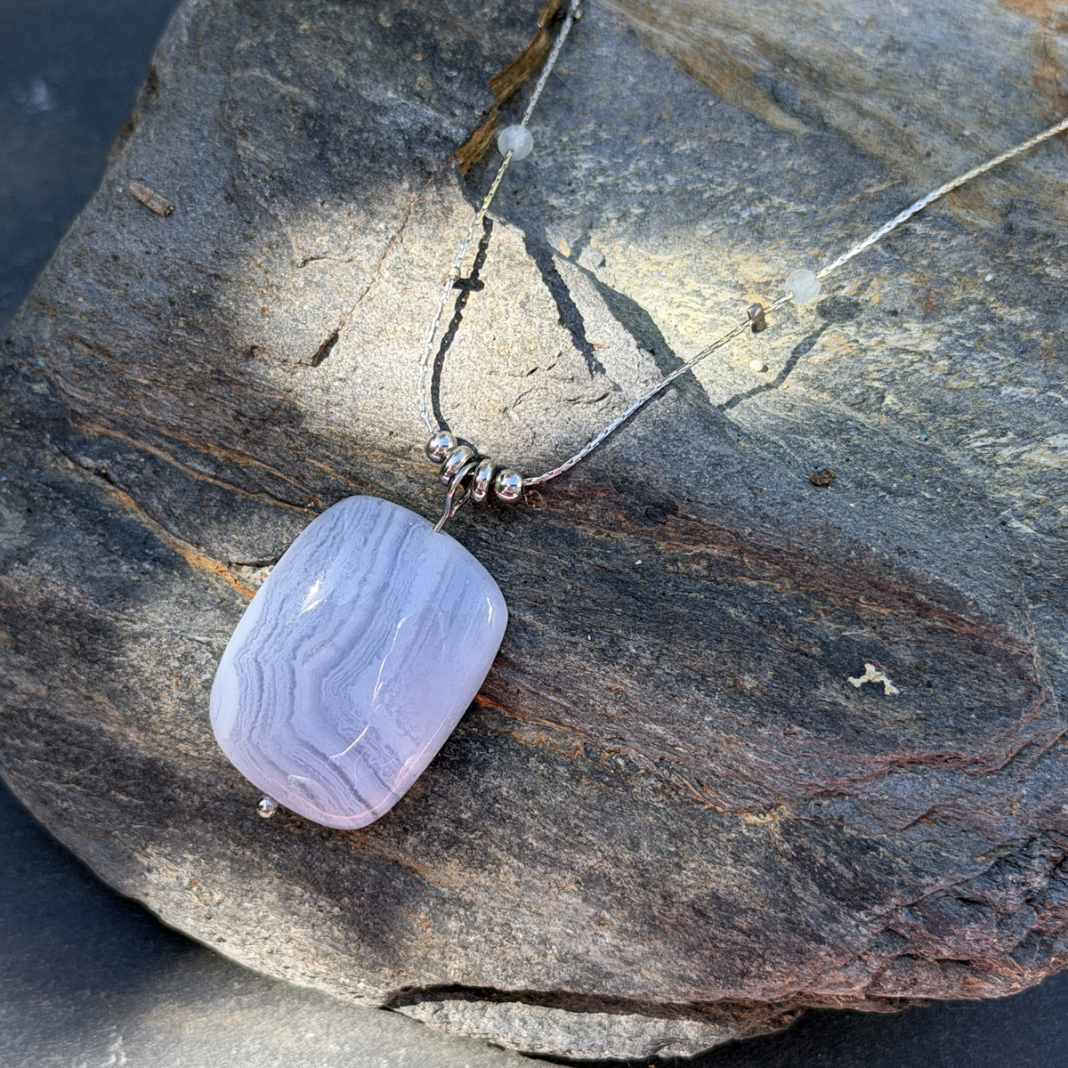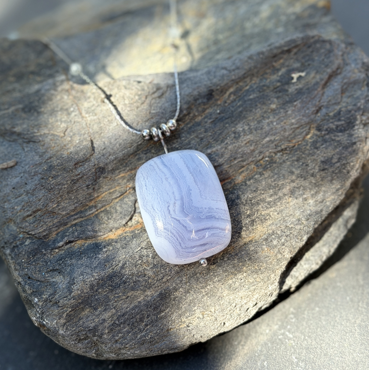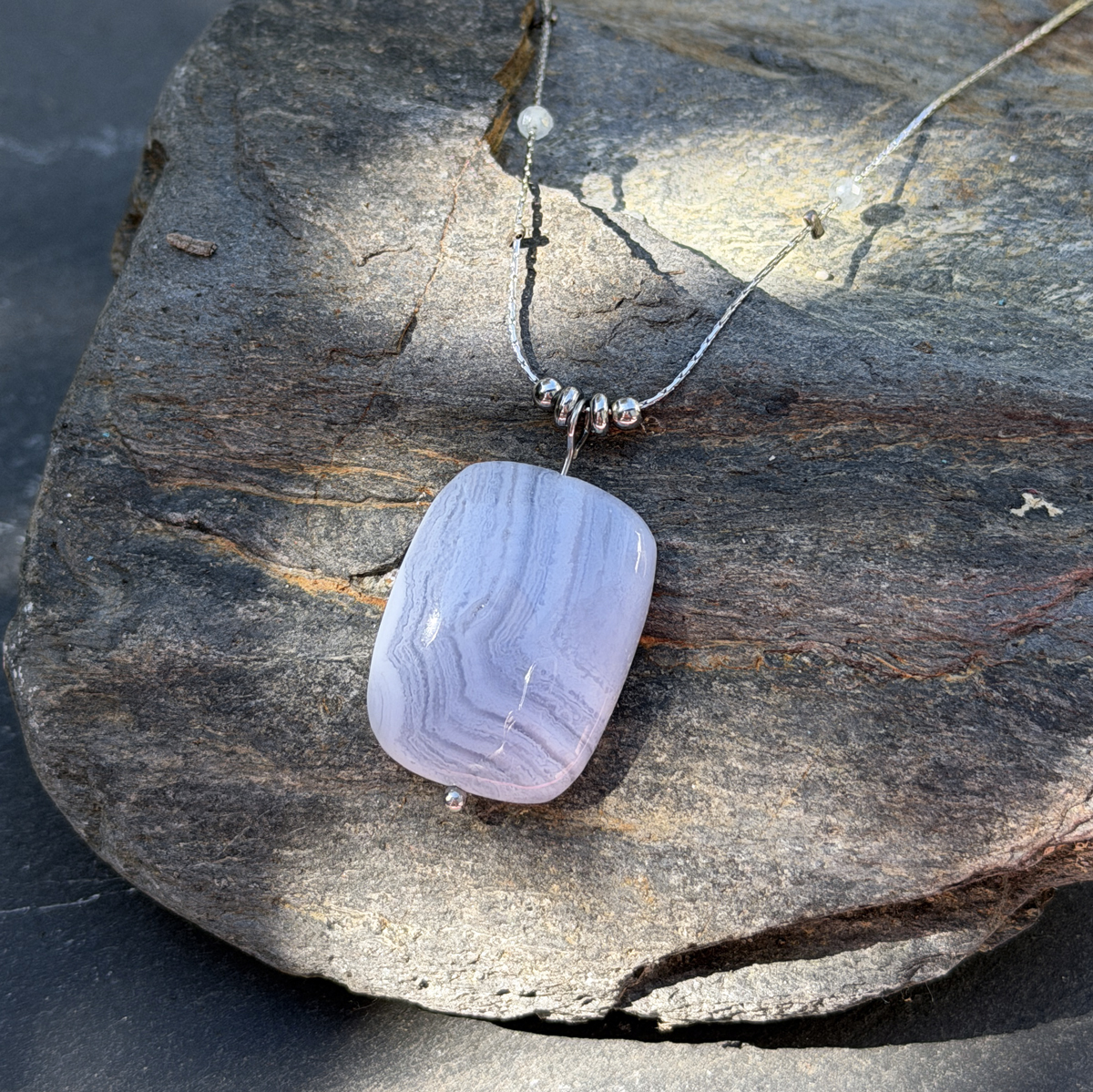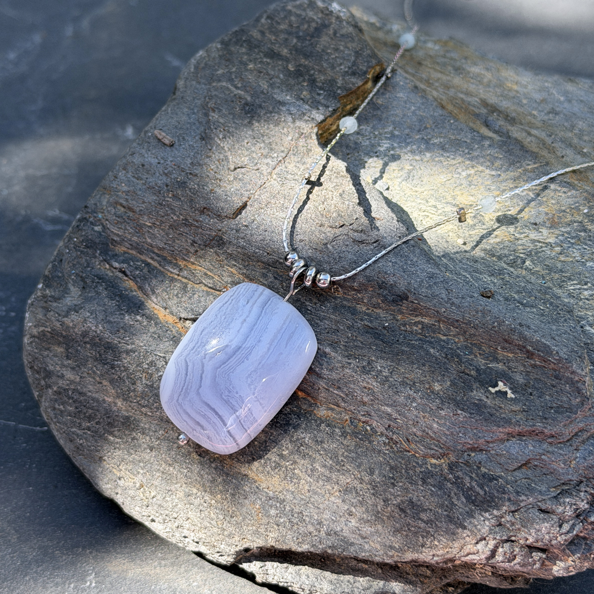 C’est précisément pour cela que ce collier en calcédoine naturelle a été créé. Pierre de douceur et de communication par excellence, la calcédoine agit sur les émotions et le mental. Elle apaise le stress, encourage la clarté d’esprit et aide à trouver les mots justes, ceux qui viennent du coeur.