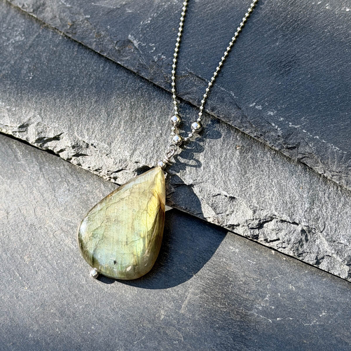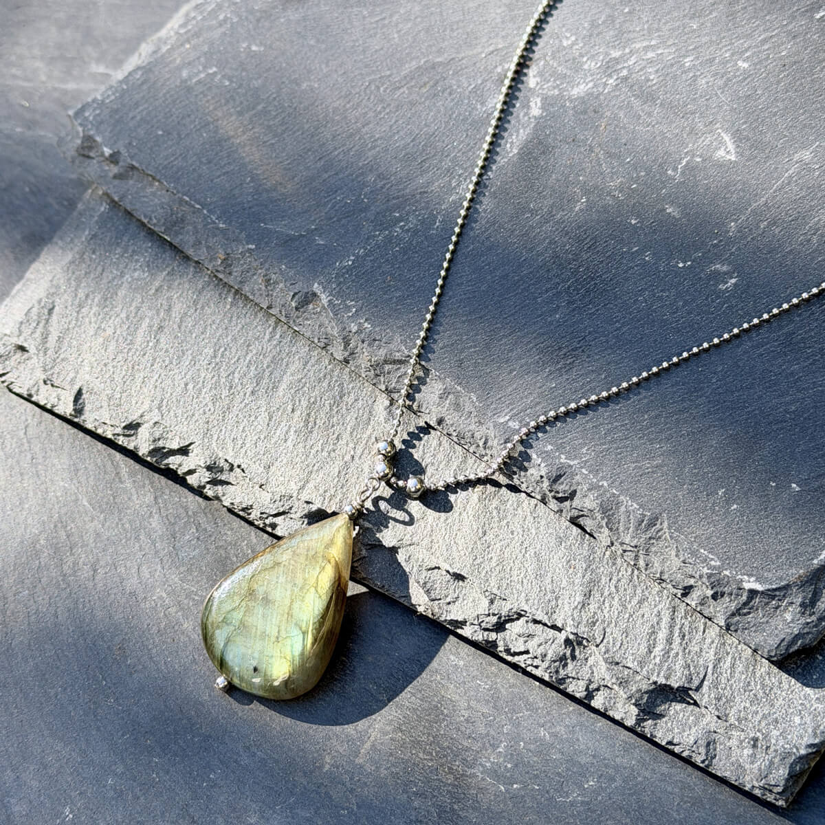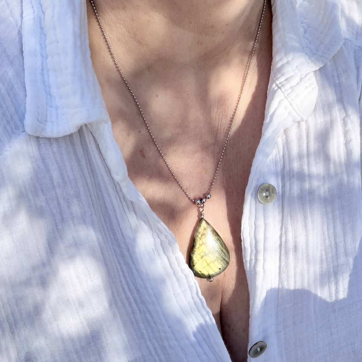 Ce collier en labradorite verte naturelle a été imaginé pour vous aider à retrouver votre équilibre intérieur et à préserver votre énergie tout au long de la journée.
