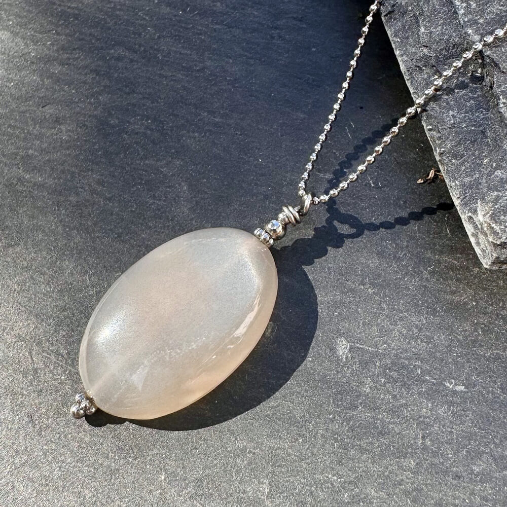 • Pierre : véritable pierre de lune naturelle d’Inde (2,8 x 1,9 cm).