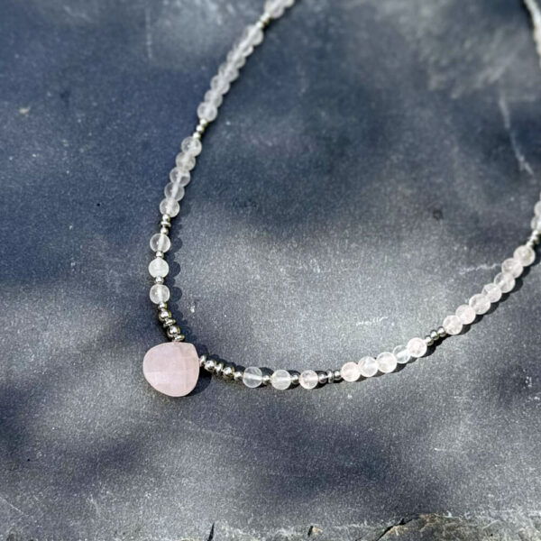 Ce collier en quartz rose naturel est le bijou idéal si vous traversez une période de stress ou si vous ressentez le besoin de vous reconnecter à l’amour, l’amour de vous-même, mais aussi des autres.