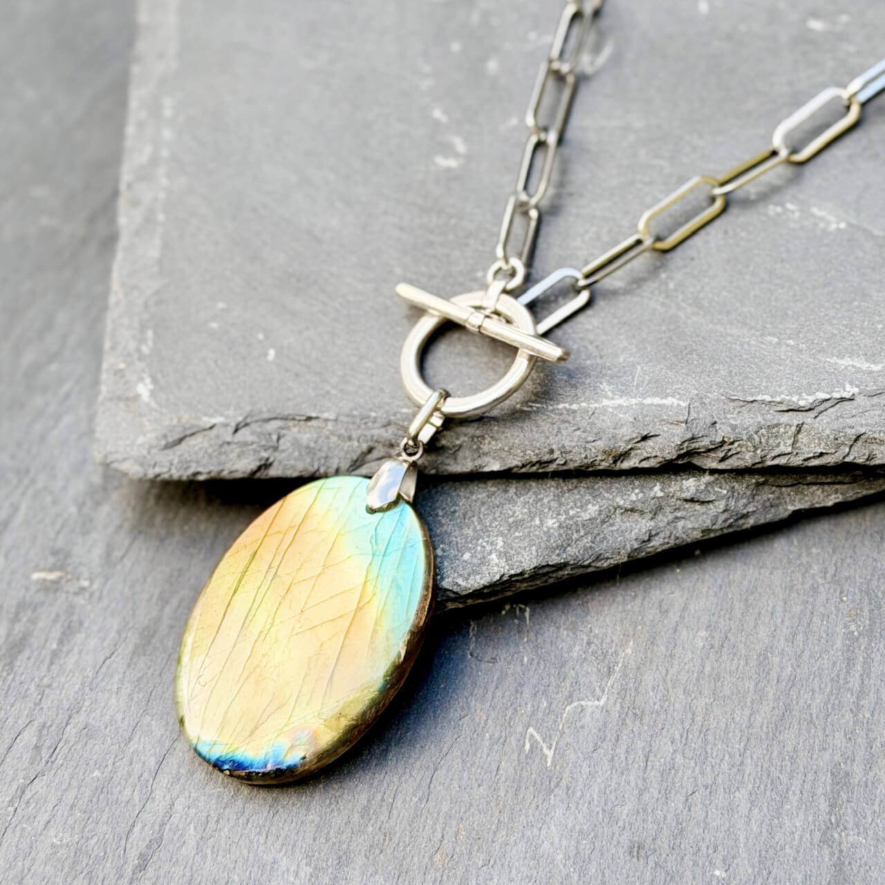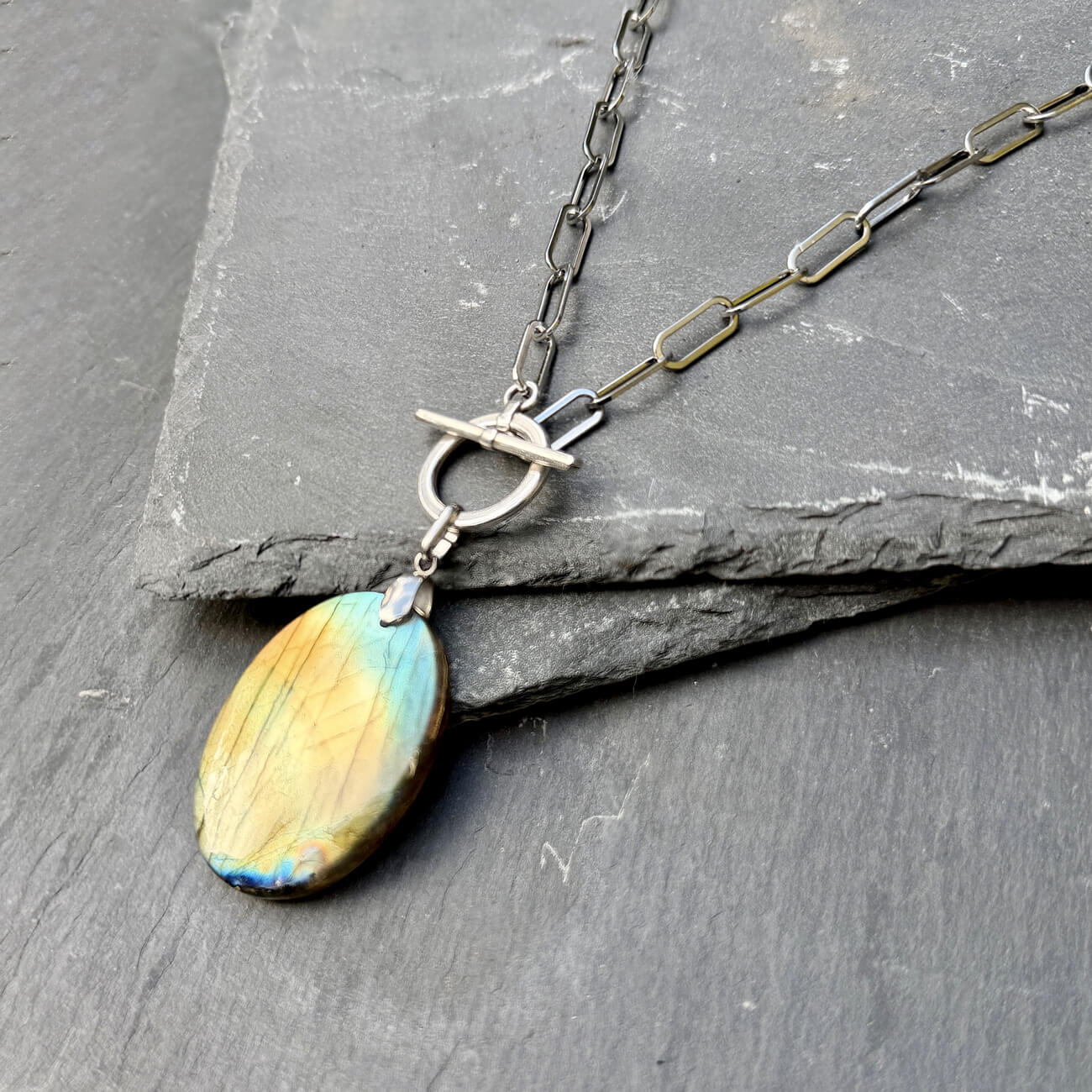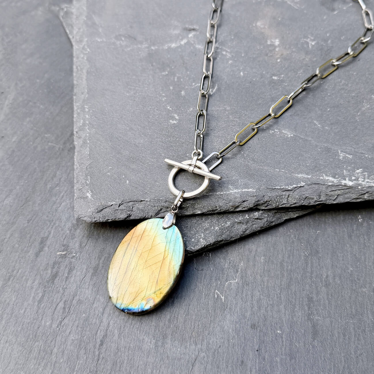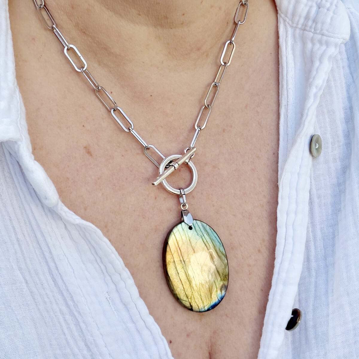 Ce collier en labradorite naturelle a été crée pour vous aider à retrouver votre équilibre intérieur et préserver votre énergie tout au long de la journée.