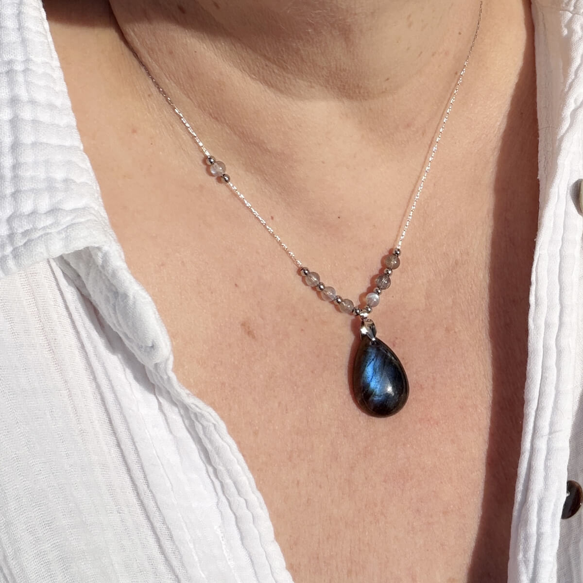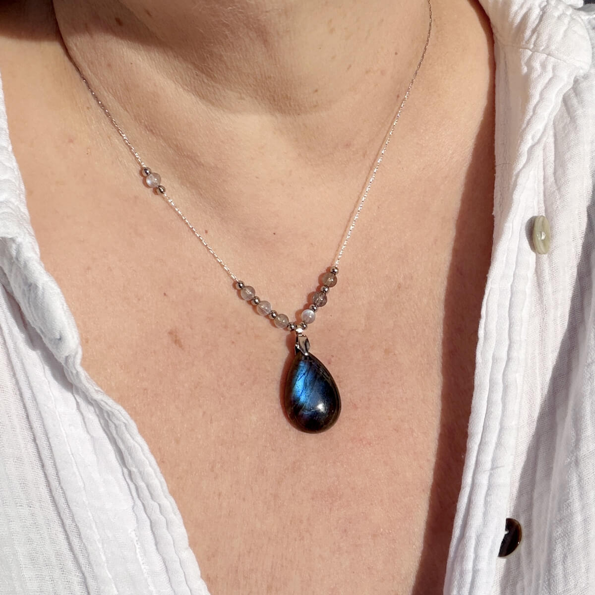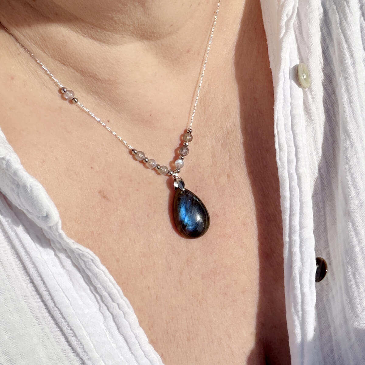 Ce collier en labradorite violette a été pensé pour vous. Plus qu’un bijou, c’est un talisman apaisant qui vous accompagne dans vos journées, vous aide à garder votre équilibre émotionnel même au milieu du tumulte.