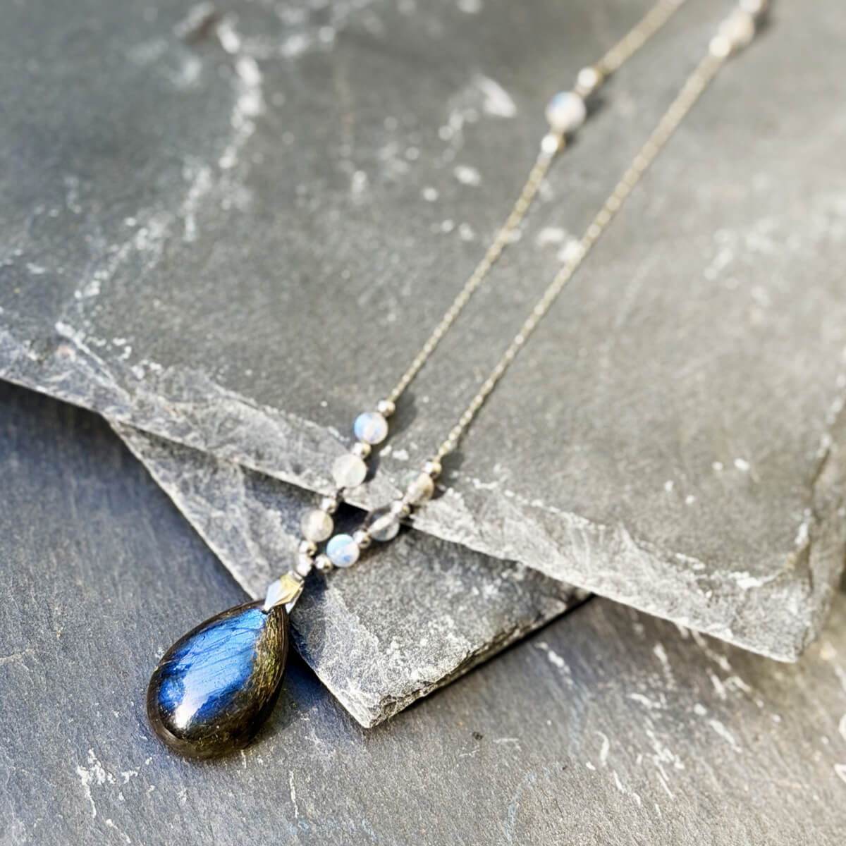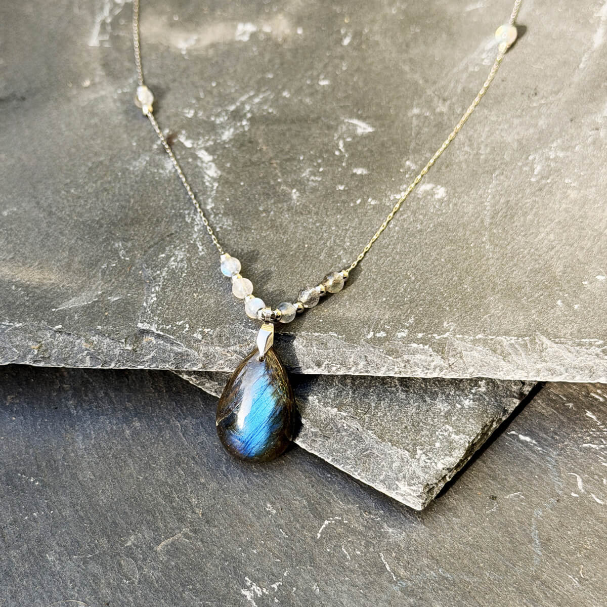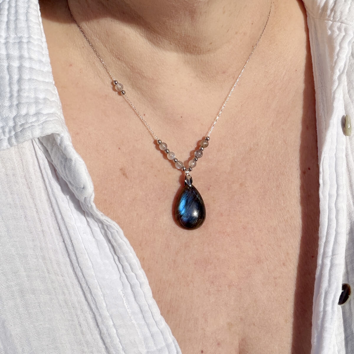Ce collier en labradorite violette a été pensé pour vous. Plus qu’un bijou, c’est un talisman apaisant qui vous accompagne dans vos journées, vous aide à garder votre équilibre émotionnel même au milieu du tumulte.